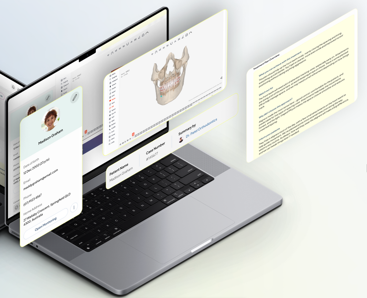 An operating system for dentist-led aligner care that brings patients to your practice. Remote monitoring between visits. Orthodontist support built in. AI documentation that returns time to your day.